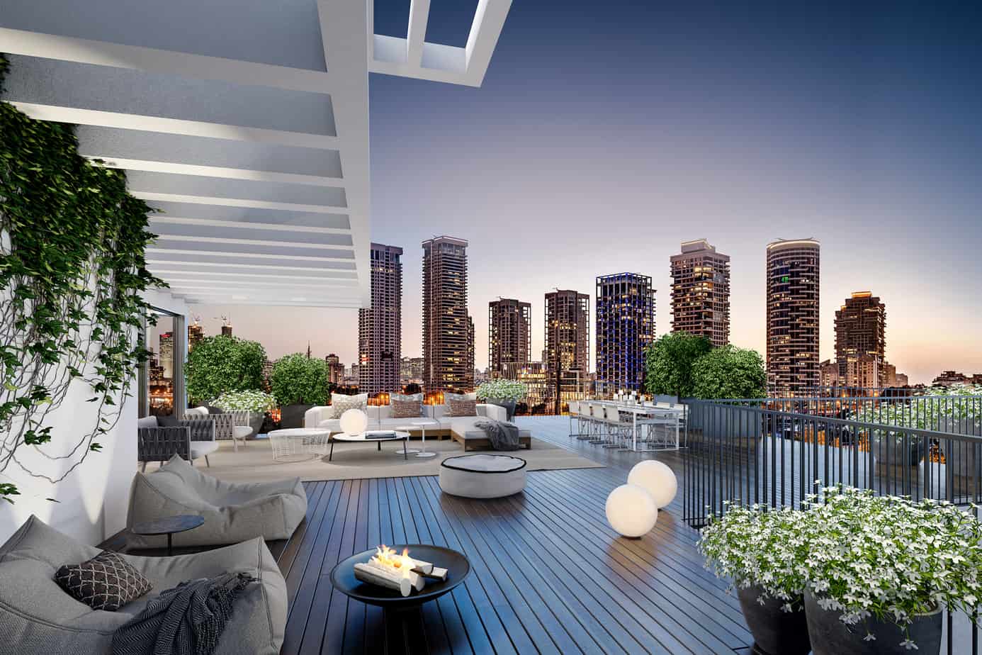 בגינות הירוקות של פאתי פארק הירקון, נמצאים הבניינים